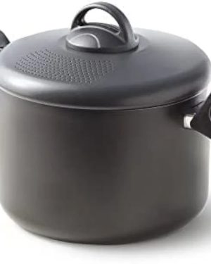Fuoco & Idee Pentola con Scolapasta, Resistente ed Antiaderente, Alluminio, Nero, Centimetri 22, 6 unitÃ