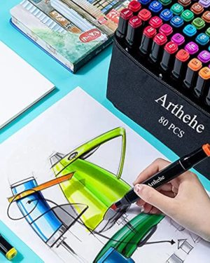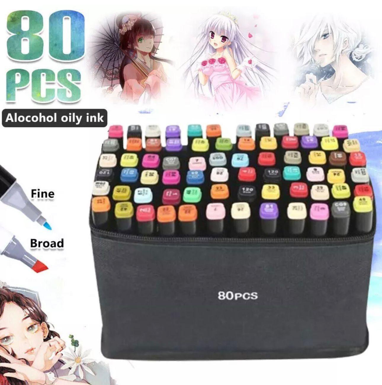 Pennarelli Punta 80 colori Marcatore artistici Pennello Marker ad Penna artistica professionale Dual Tips Pennarello indelebile per adulti e bambini