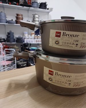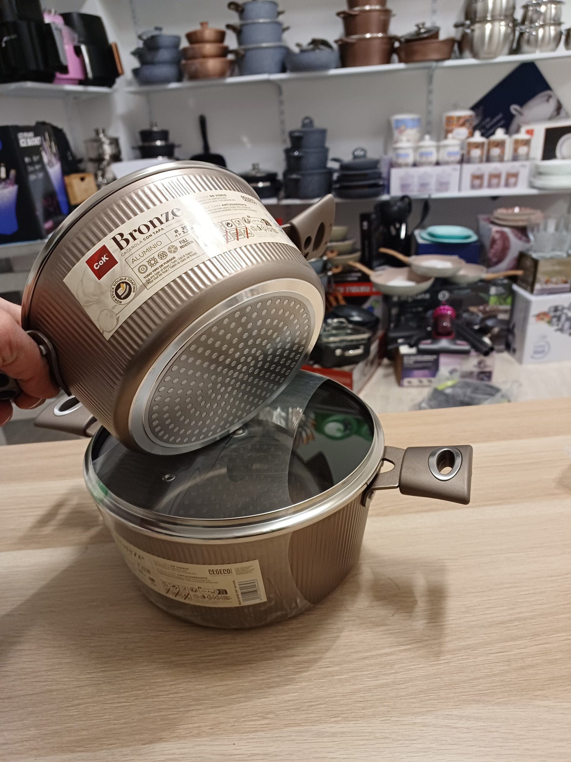 La collezione di pentole Cook&Strong presenta un design moderno e funzionale. La finitura bronze non è solo un dettaglio, ma una dichiarazione di stile.