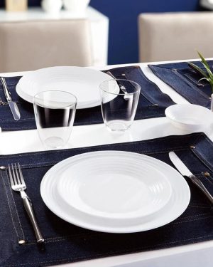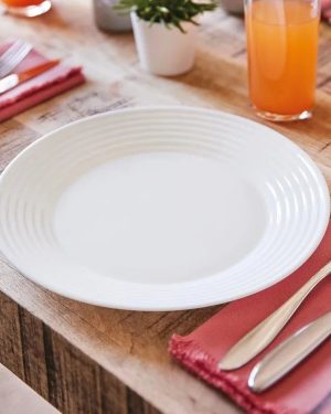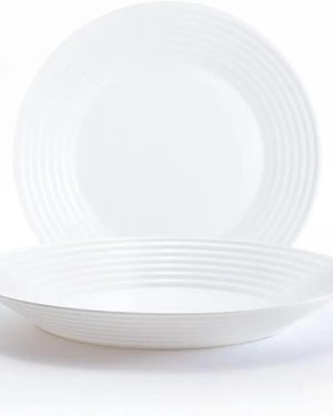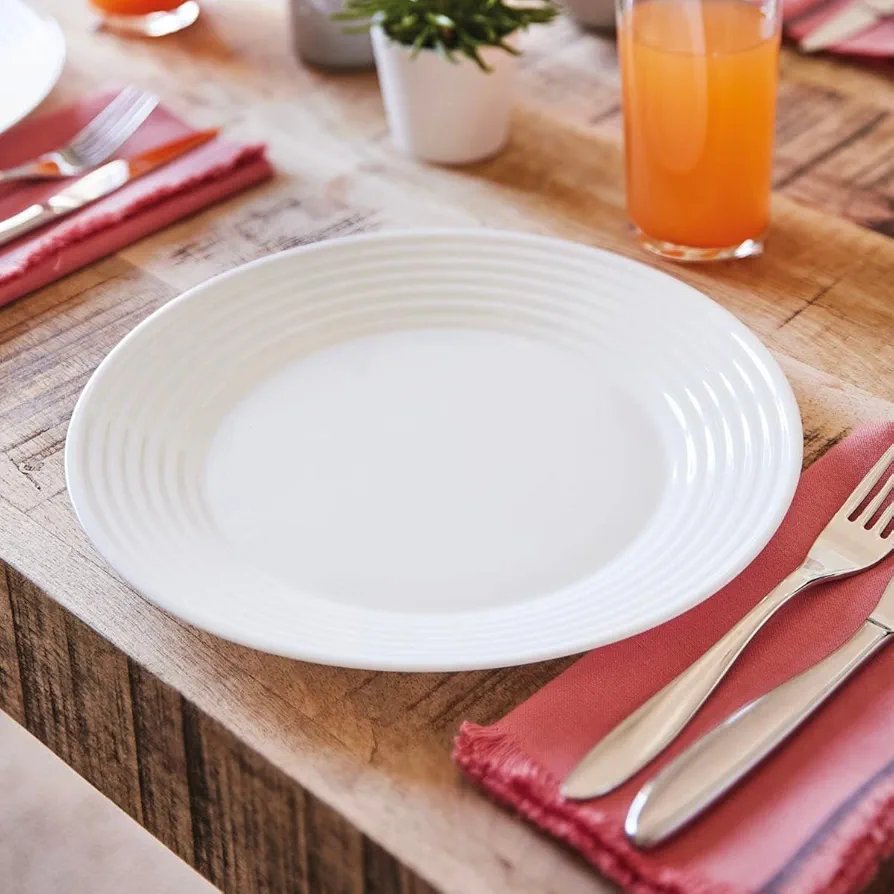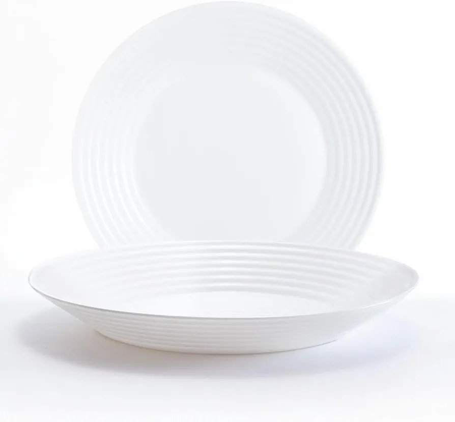 Set di stoviglie rotonde da 18 pezzi in vetro opalino con finitura Harena Luminarc bianca