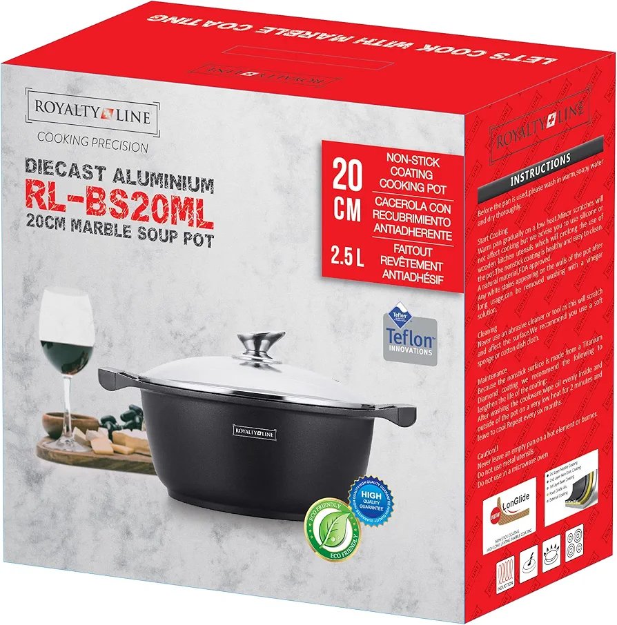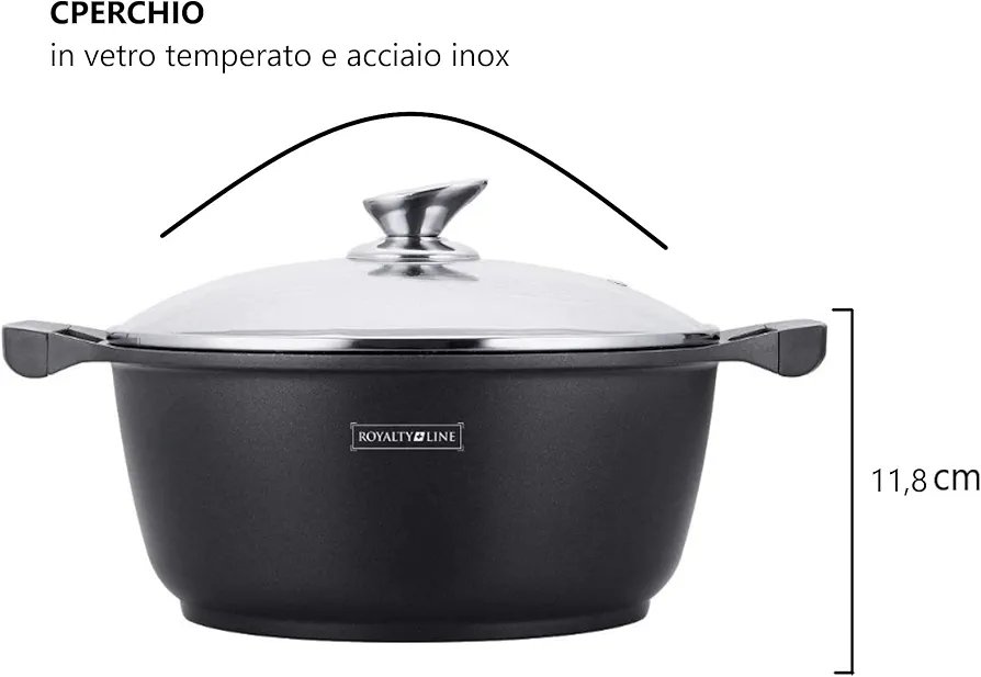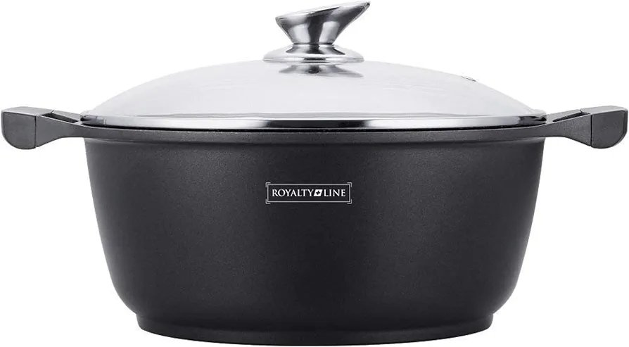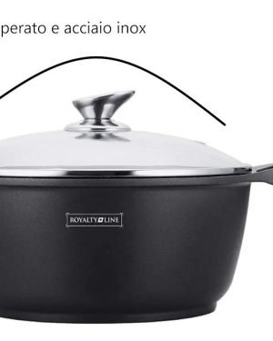 Royalty Line RL-BS20M, Pentola con Rivestimento Antiaderente, Coperchio in Vetro, Induzione, 20 cm, Nero