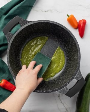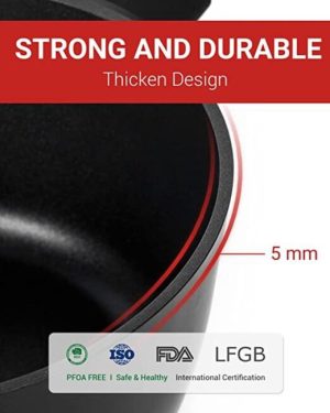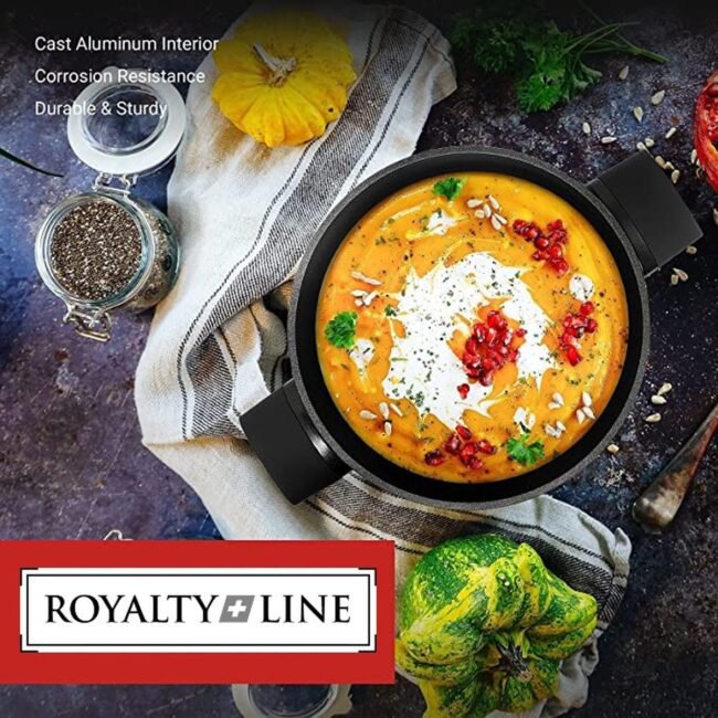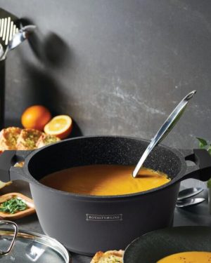 La Royalty Line casseruola di rivestimento in marmo da 28 cm è caratterizzata da una durata e resistenza maggiori rispetto ai rivestimenti convenzionali grazie al processo di cottura. Le maniglie soft touch sono resistenti al calore e antibatteriche, realizzate con una miscela di bachelite e silicone. Il rivestimento in marmo antiaderente garantisce una facile pulizia e il corpo leggero e resistente è facile da maneggiare. La casseruola è adatta per la lavastoviglie.