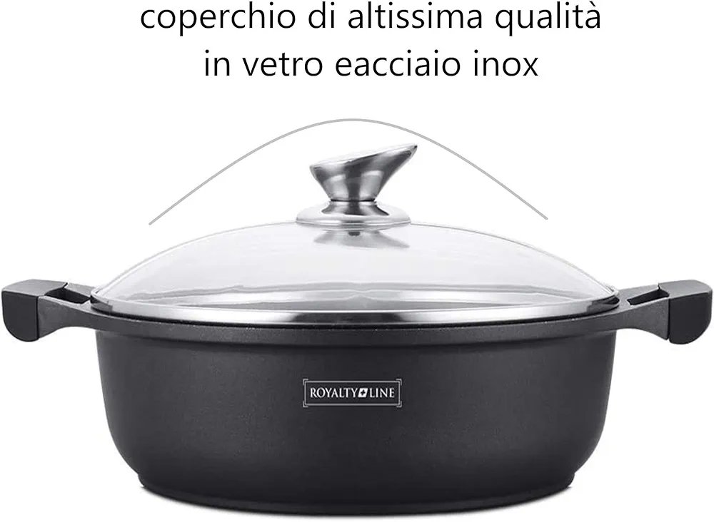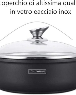 Pentola Bassa con Rivestimento Antiaderente, Coperchio in Vetro 7.3Litri 34 cm