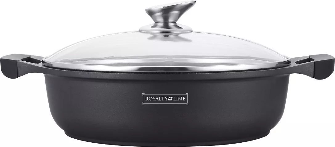 Royalty Line – RL-BS30M – Pentola con con Rivestimento Antiaderente, Coperchio in Vetro, Induzione, 7 Litri, 30 cm, Nero – Nuovo modello