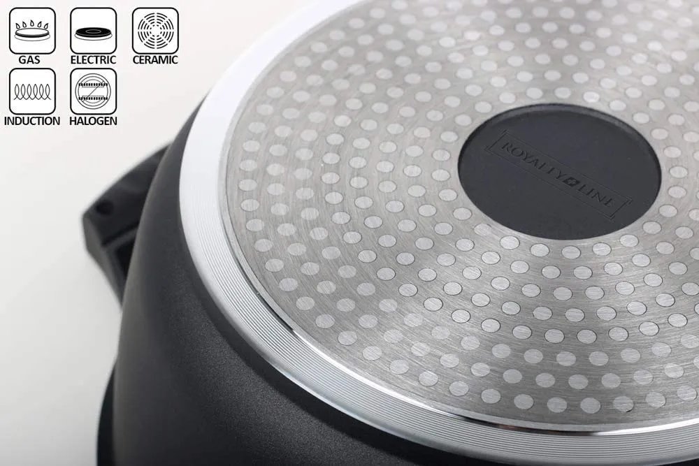 Royalty Line – RL-BR32M – Pentola Bassa, con Rivestimento Antiaderente, Coperchio in Vetro, Induzione, 5.5 Litri, 32 cm