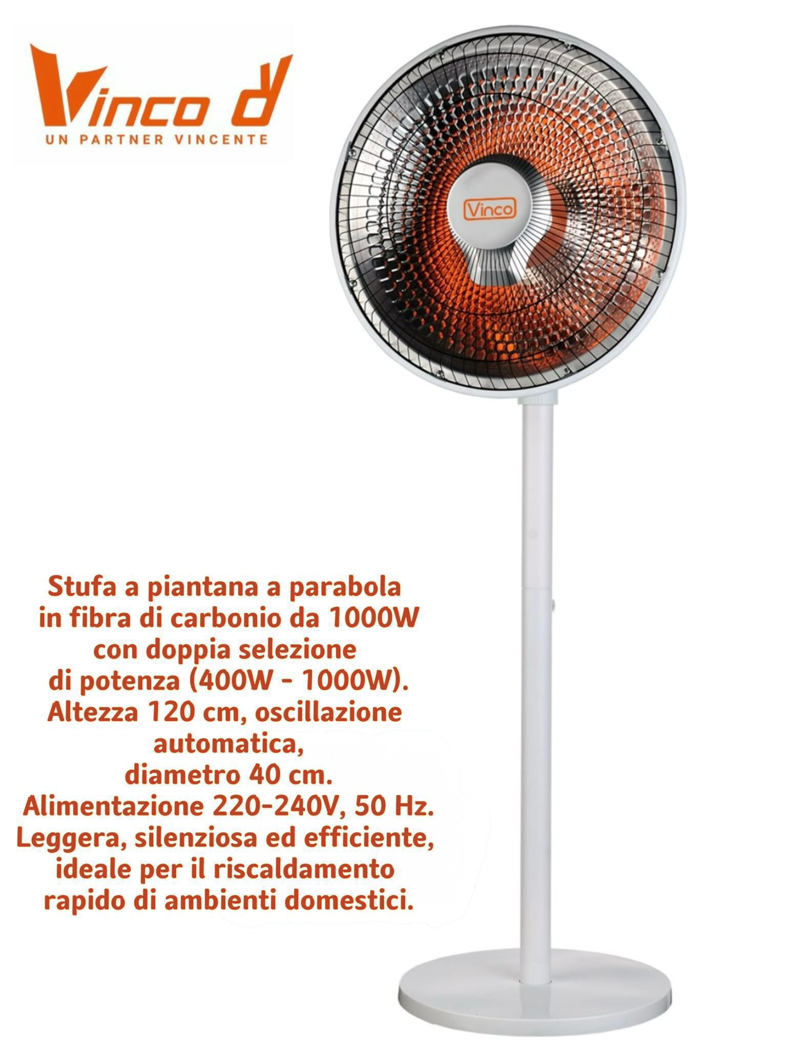 Stufa a piantana a parabola in fibra di carbonio da 1000W